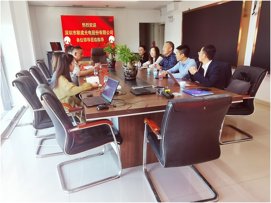 10月20日,國內LED顯示屏廠商深圳市聯建光電股份有限公司(股票代碼300269)總經理劉小偉、內銷總監管麒麟、南方大區總監李欣等一行5人蒞臨榮臻電子開展交流會談,共商合作發展新方向。榮臻電子黨支部書記兼董事長徐卓、銷售總監徐瑤、財務總監黃送及相關領導熱情接待了劉總一行。